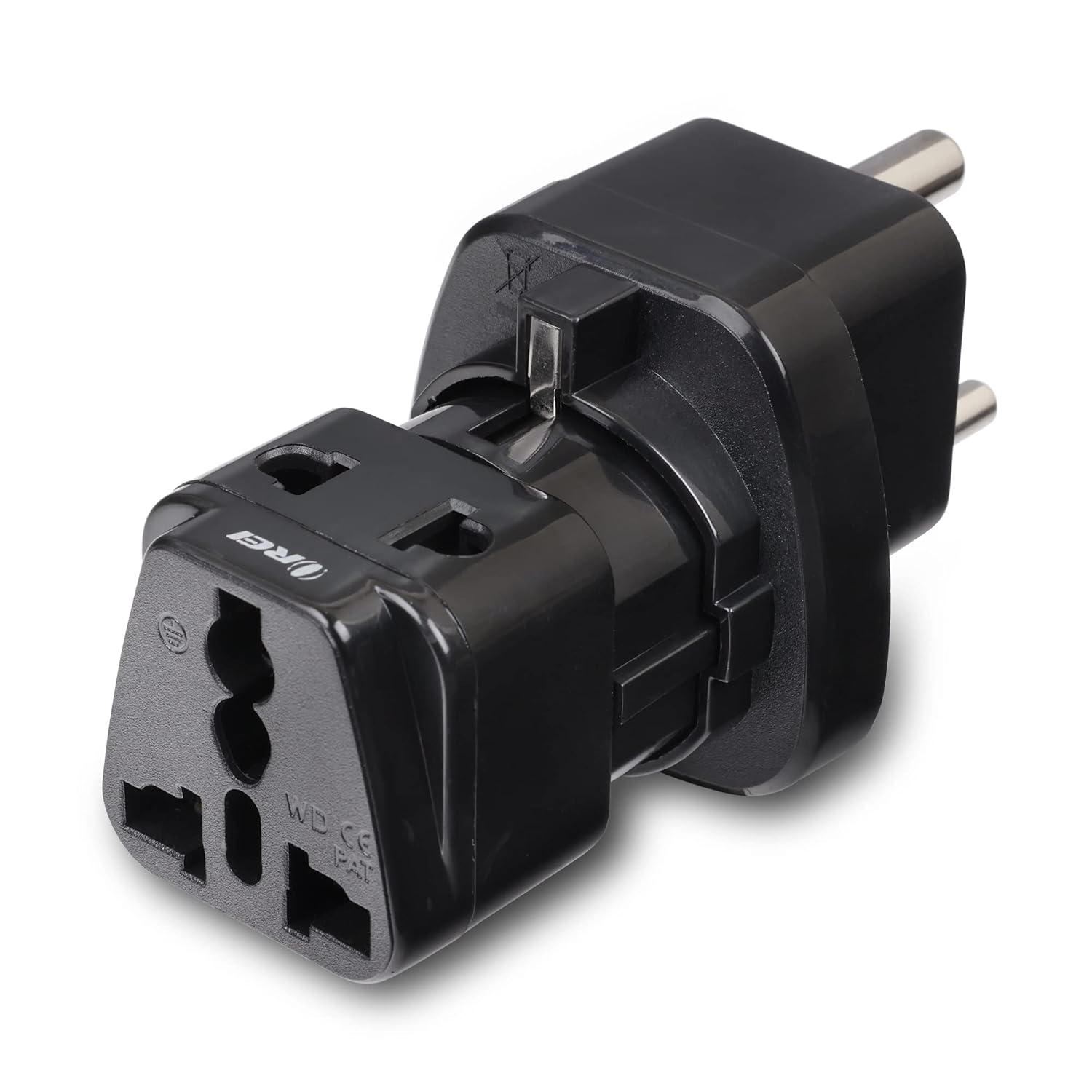 The GP-910-4PK is designed in the USA and is a reliable travel plug adapter for using European (Schuko) Type E/F plugs in India and other Type D regions. It allows you to connect one European electrical device with a grounded Type E/F plug to an India Type D 3-prong outlet. This adapter is ideal for use with dual-voltage or worldwide-voltage devices and supports a voltage range of 110V–250V up to 7.5A.