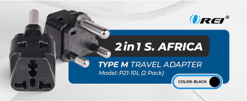 South Africa, Botswana Travel Adapter - 2 in 1 - Type M - Compact Design (P21-10L-2PK)