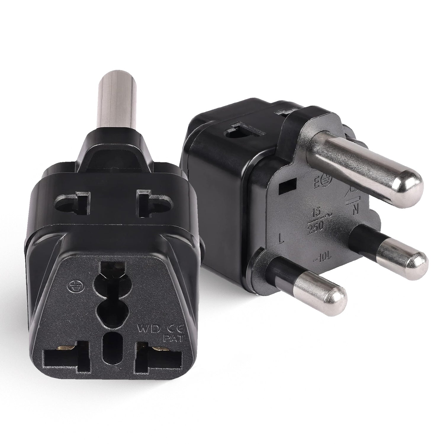 The P21-10L-2PK is designed in the US and it’s our top choice for travel adapter to use in Type M outlets. It's compatible for use with dual voltage or worldwide voltage devices .It features one socket to connect a N. American 2-prong or a 3-prong power cord to charge your devices.