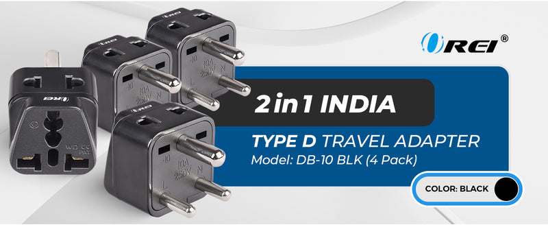 India, Nepal Travel Adapter - 2 in 1 - Type D - Compact Design (P21-10-4PK)