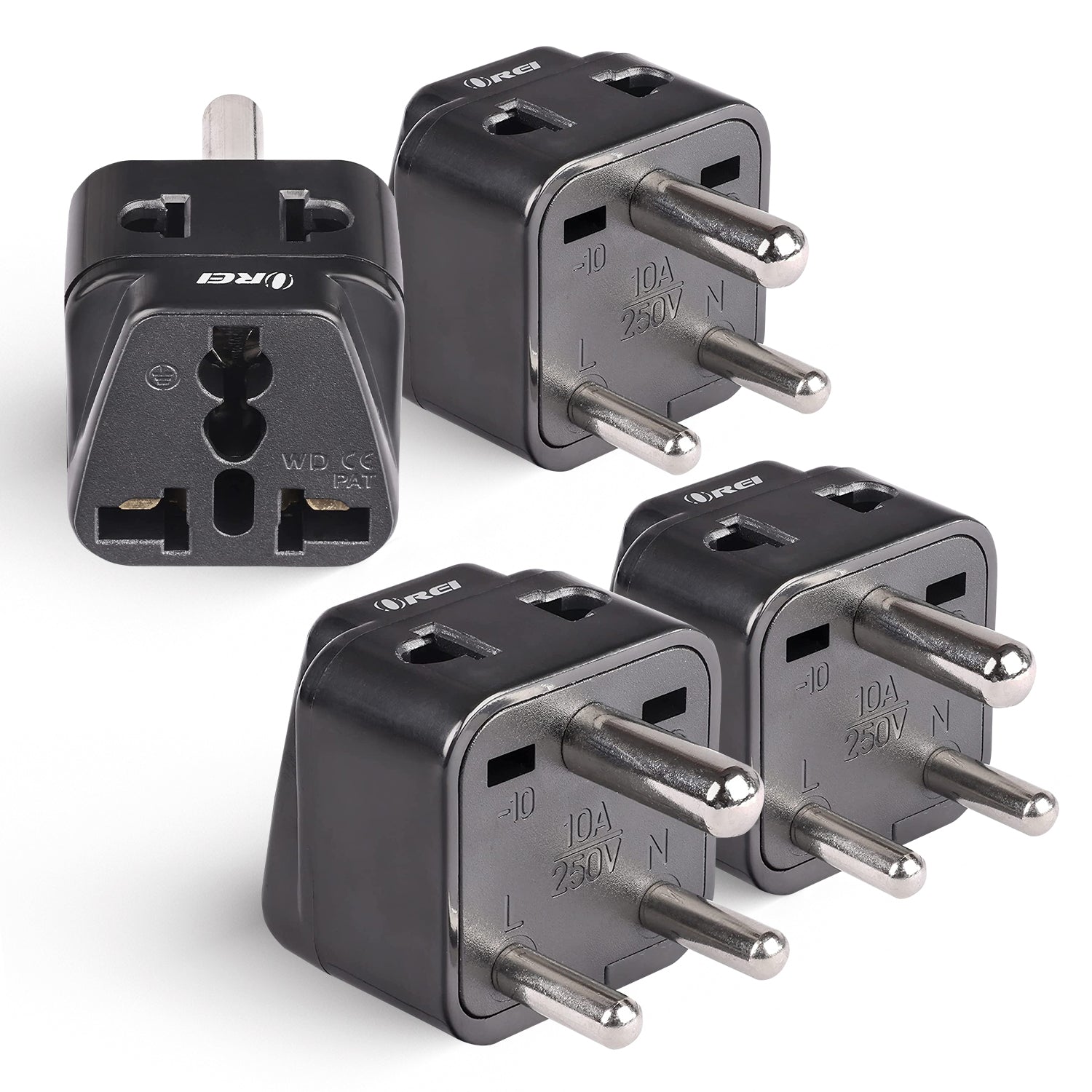 The OREI USA to India Converter Plug is designed to adapt international plugs for use with Type D (BS-546) outlets commonly found in India, Pakistan, Bhutan, and surrounding regions. It accepts plugs from the USA, UK, Australia, China, Canada, and most other countries, allowing travelers and professionals to connect their devices without changing power cords. This adapter provides a reliable solution for international compatibility in residential and commercial environments.