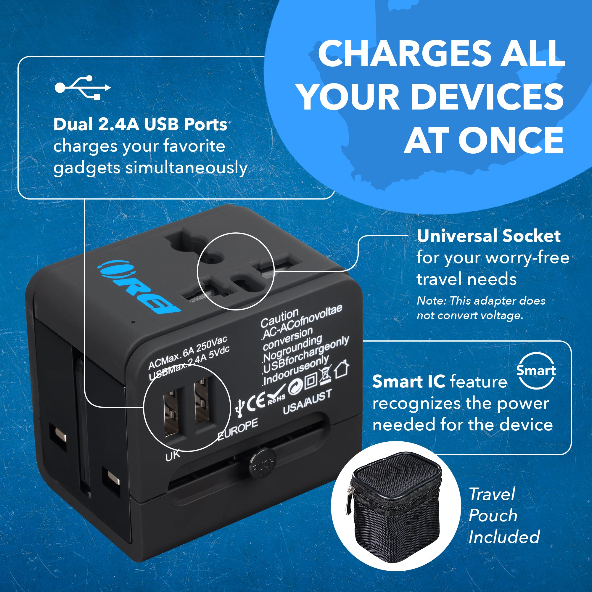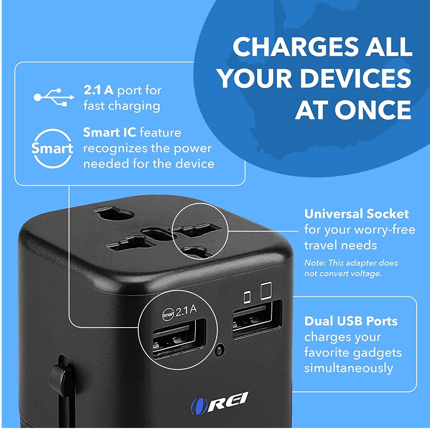 OREI Worldwide Universal Travel Adapter with Dual USB Ports (M9)