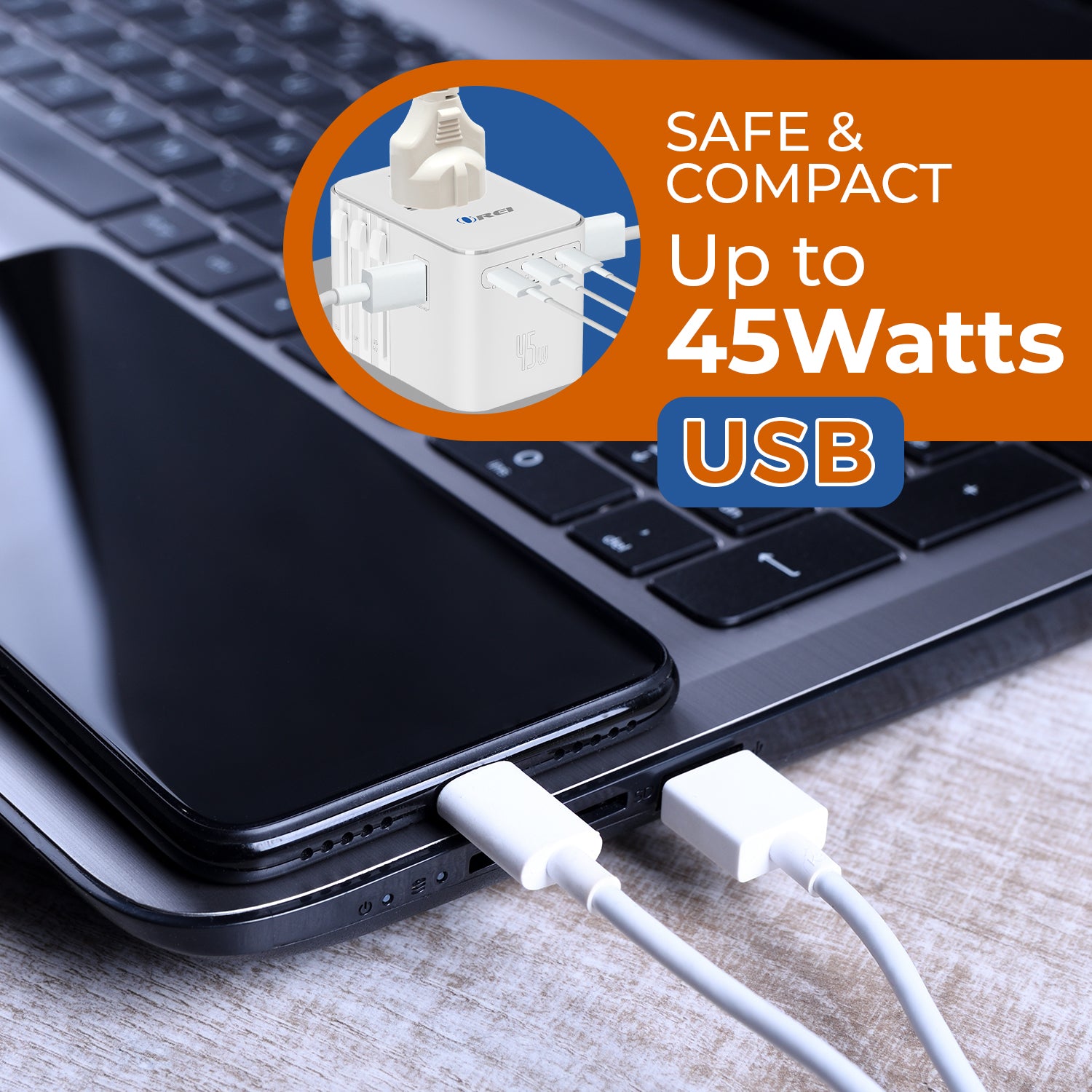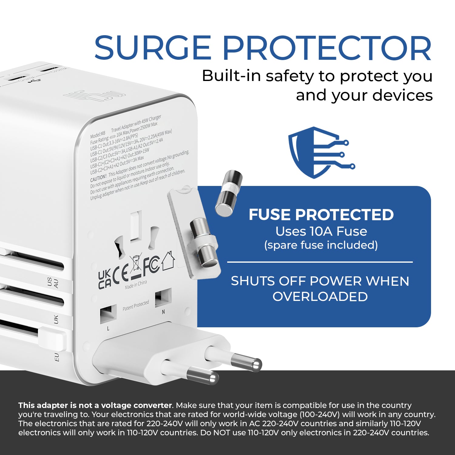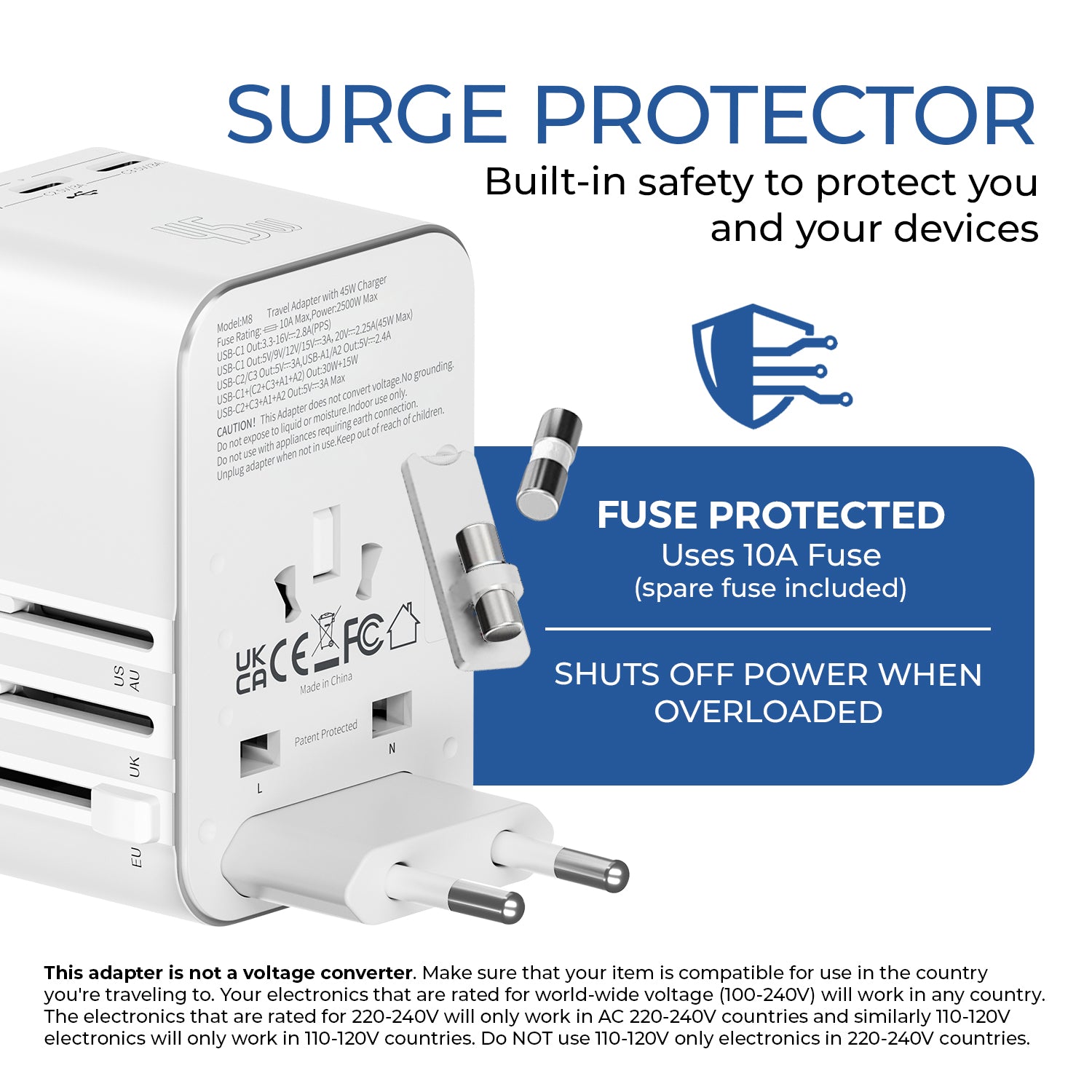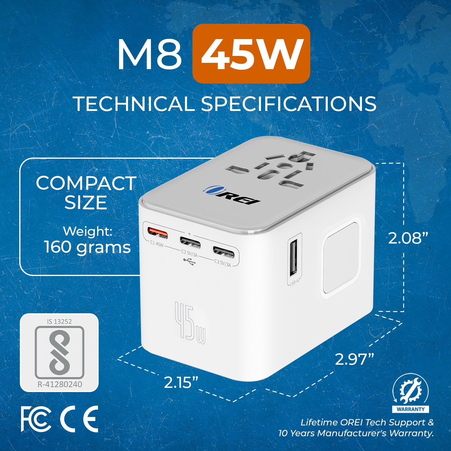 OREI 45W Universal Travel Adapter | 6-in-1 with 3 USB-C & 2 USB-A (M8-45W-White)