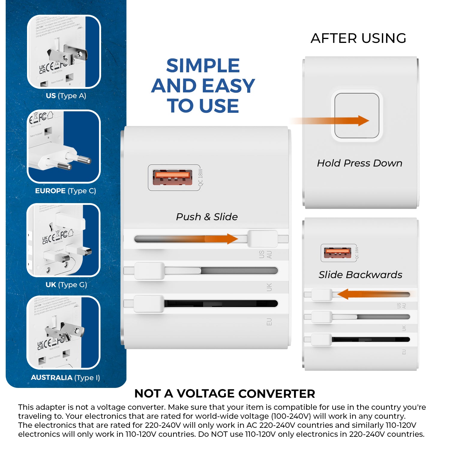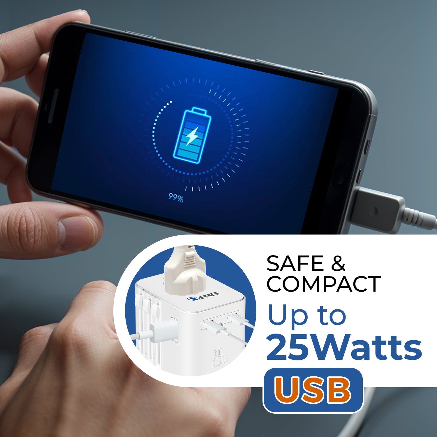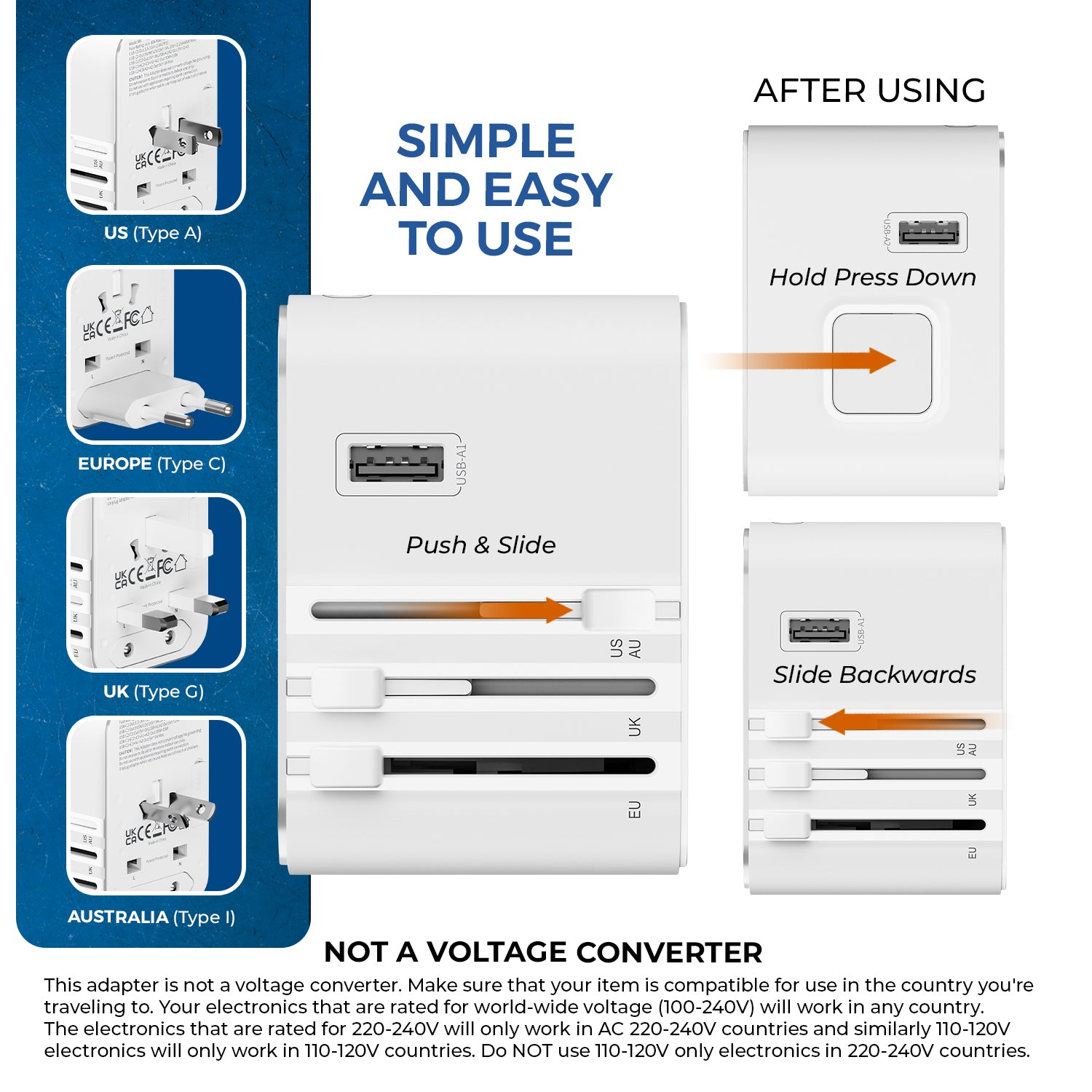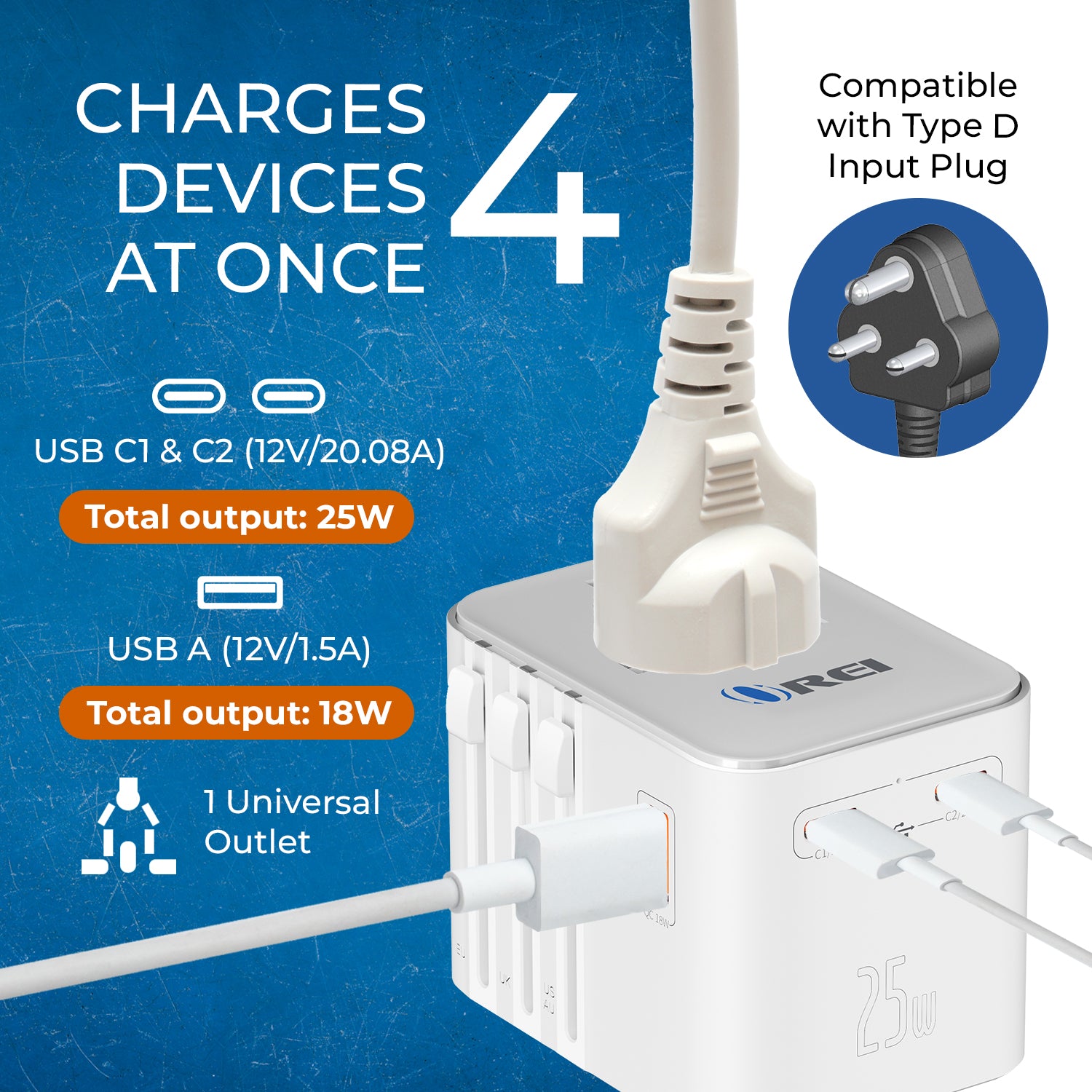 OREI 25W Universal Travel Adapter | 4-in-1 with USB-C & USB-A (M8-25W-White)