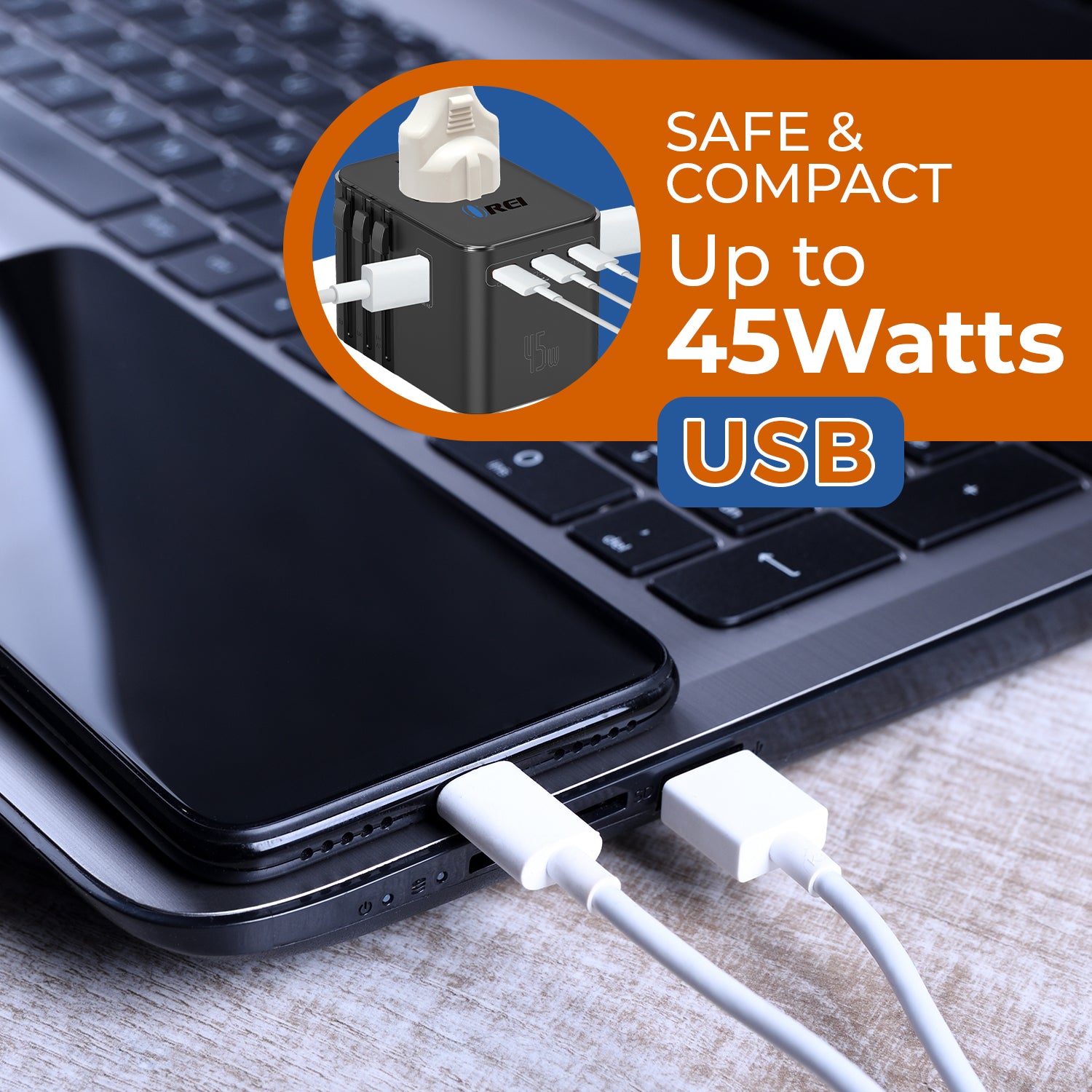 OREI 45W Universal Travel Adapter | 6-in-1 with 3 USB-C & 2 USB-A (M8-45W-CO)