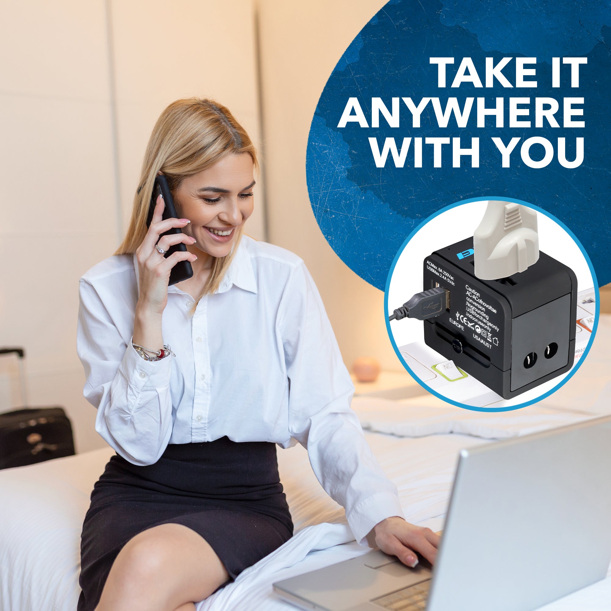 OREI Universal Travel Adapter - 1 USB-A, 1 USB-C With Surge Protection (M10)