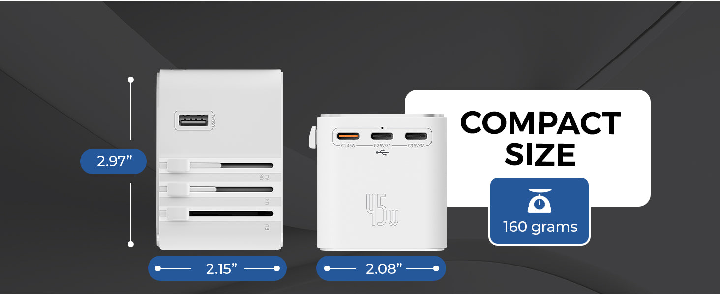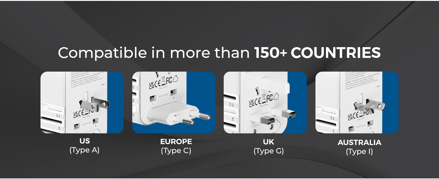 - Universal Plug Compatibility – Supports Type A, C, G & I plugs in 150+ countries.