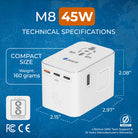 OREI 45W Universal Travel Adapter | 6-in-1 with 3 USB-C & 2 USB-A (M8-45W-White)
