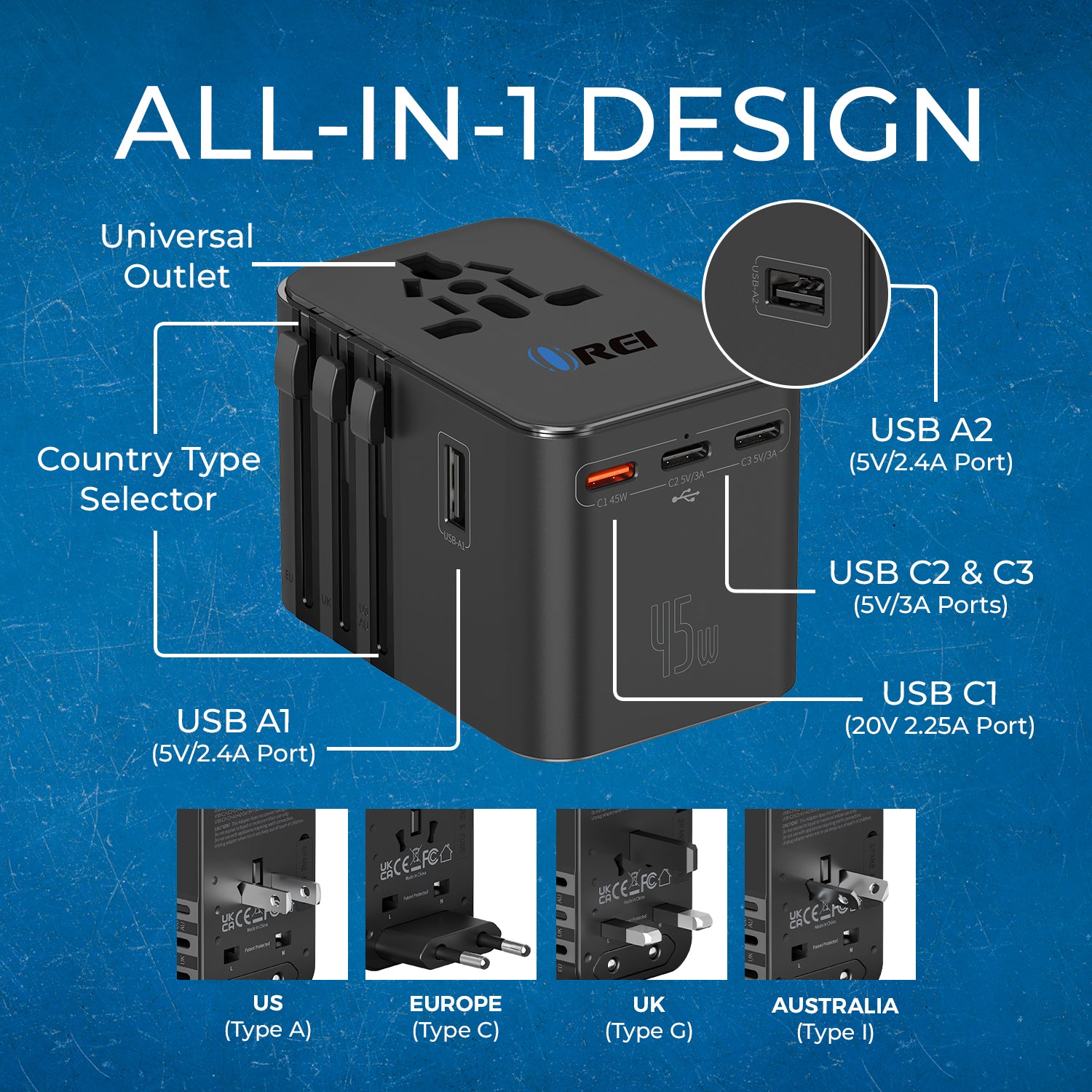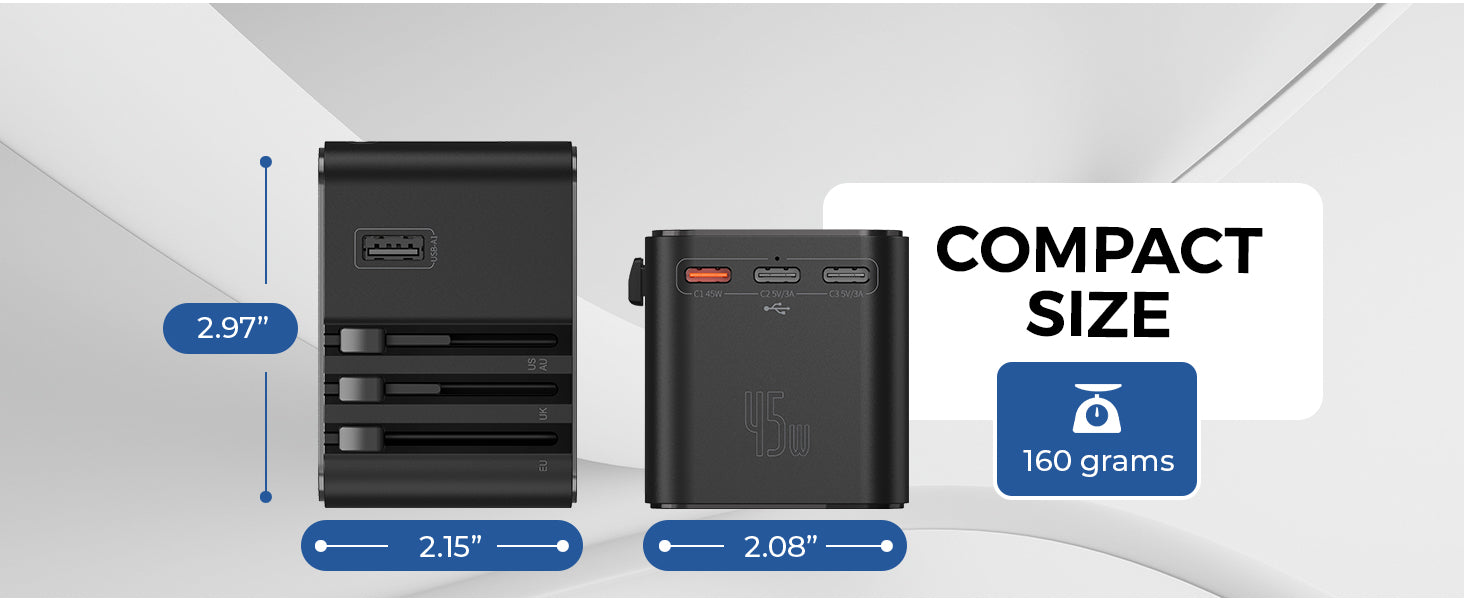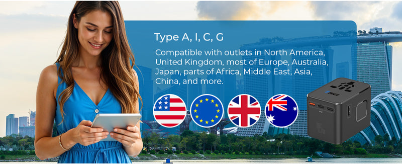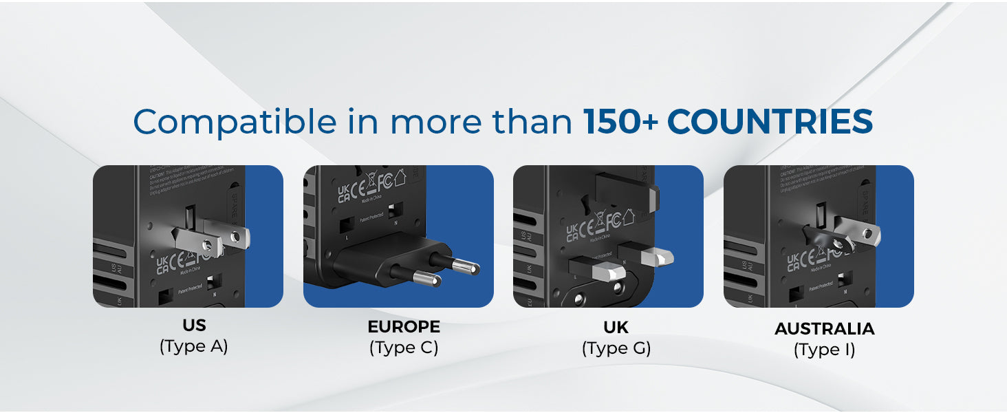 - Universal Plug Compatibility – Supports Type A, C, G & I plugs in 150+ countries.