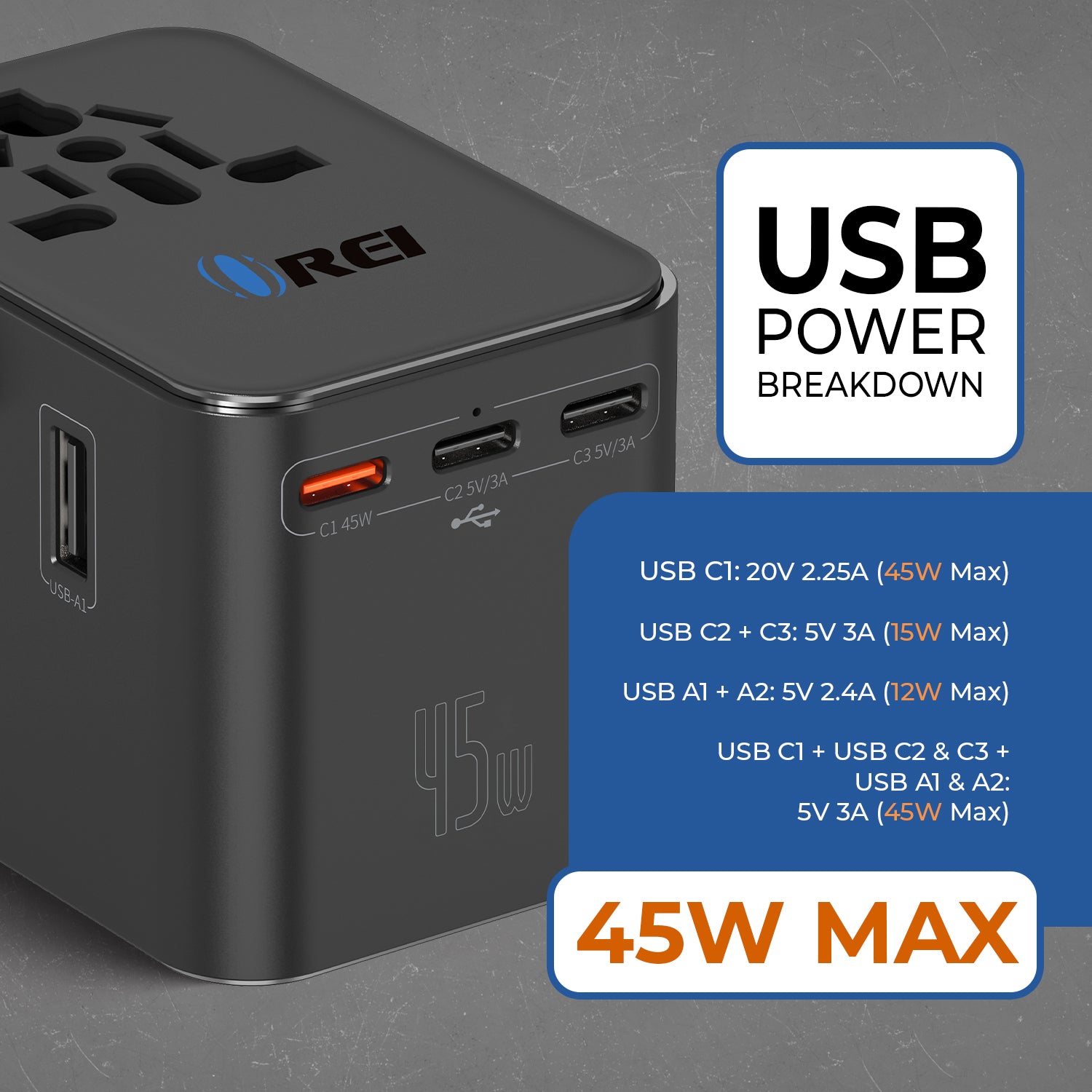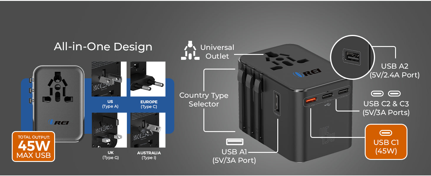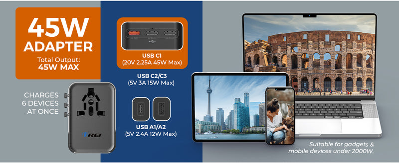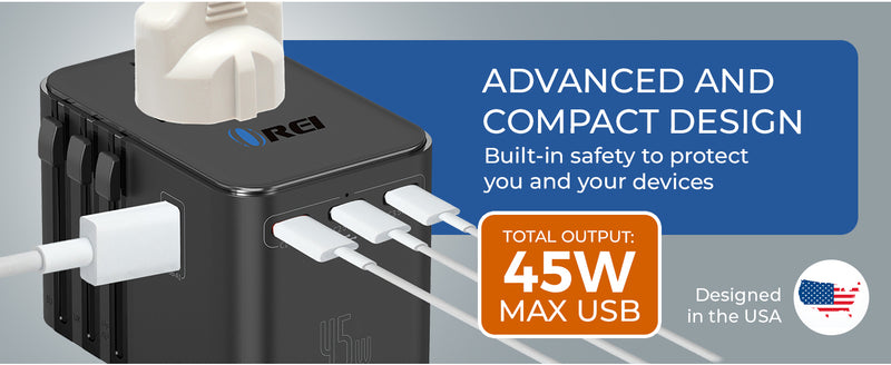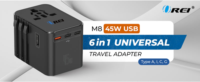 OREI 45W Universal Travel Adapter – Compact 6-in-1 Charger for Safe & Reliable Travel