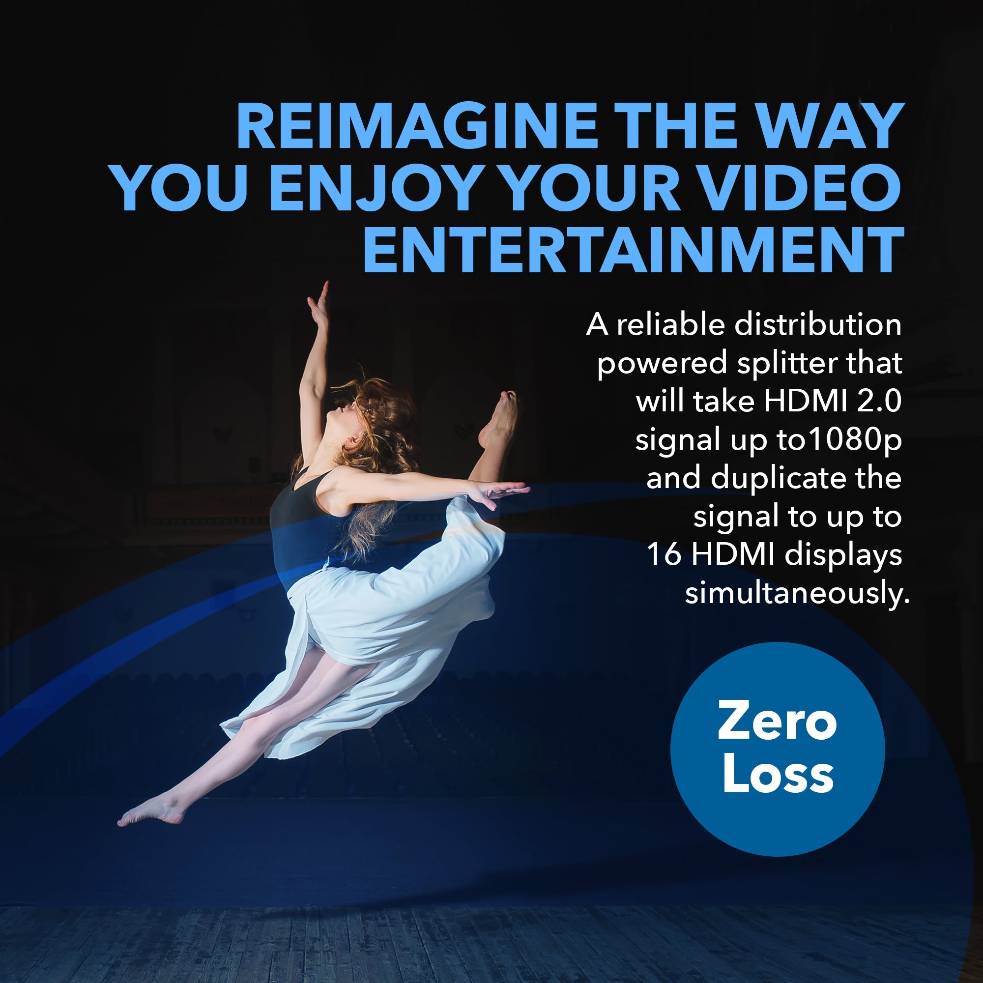The HD-1016 supports 3D, HDR, and Dolby Vision, delivering enhanced depth, contrast, and color accuracy across all connected screens. Whether you're running a multi HDMI port setup for presentations or entertainment systems, the splitter ensures that your displays offer an immersive visual experience. From conference rooms to home theaters, this feature-rich splitter enhances the viewing quality for all applications.