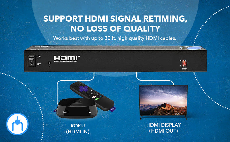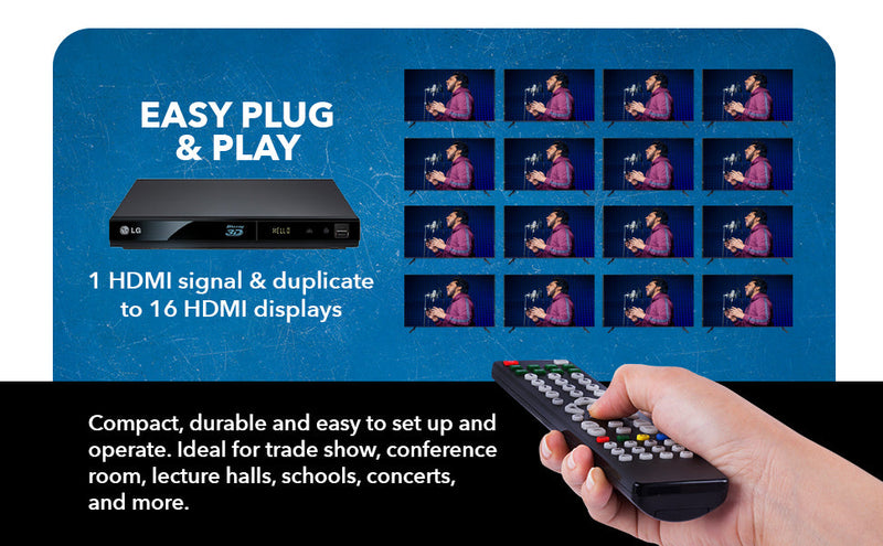 This HDMI splitter 1x16 allows you to distribute a single HDMI input to up to 16 HDMI outputs, supporting video resolutions up to 4K at 30Hz. Perfect for multi-monitor setups or digital signage, it ensures that all connected displays receive high-definition video, whether you're using it for a laptop screen splitter or as an HDMI port splitter for TV. With 10.2Gbps of video bandwidth, it provides smooth and reliable signal transmission across all outputs.