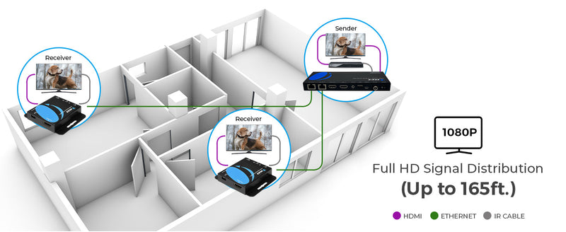 Signal Extension up to 230ft – Transmits video up to 165ft at 4K@30Hz and 230ft at 1080p@60Hz over CAT6/7 cable.