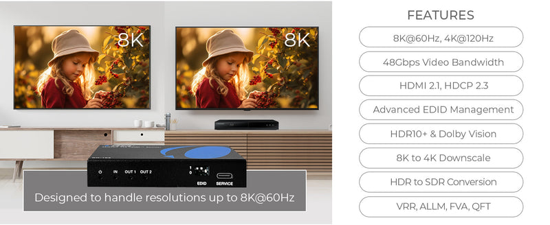 8K 1x2 HDMI™ Splitter (Downscaler)-BK-102