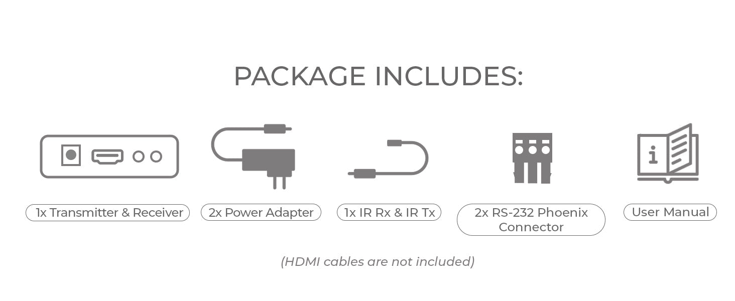 Designed for seamless point-to-point connectivity, the extender includes RS-232 and one-way IR for streamlined control of the source device from the receiver's location. The receiver also features a 3.5mm audio output for convenient external audio extraction.