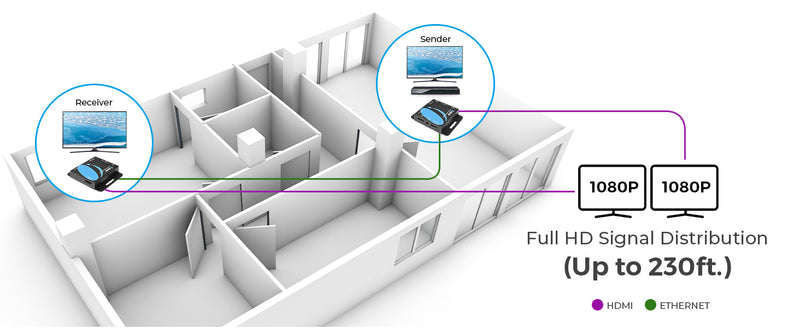 Delivering resolutions up to 4K@30Hz (YUV 4:4:4), this HDMI extender ensures sharp, vibrant visuals for professional AV environments. Whether using CAT6 or CAT5e, it supports long-distance transmission—up to 230ft (1080p) or 131ft (4K)—without signal loss, making it ideal for control rooms, classrooms, and digital signage applications.