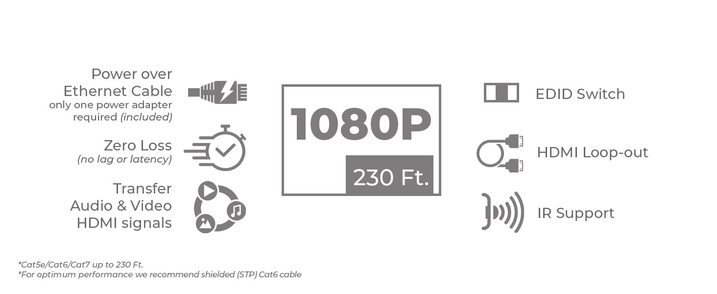 We recommend you use shielded CAT6 cables & High-Quality HDMI Cables for optimum performance