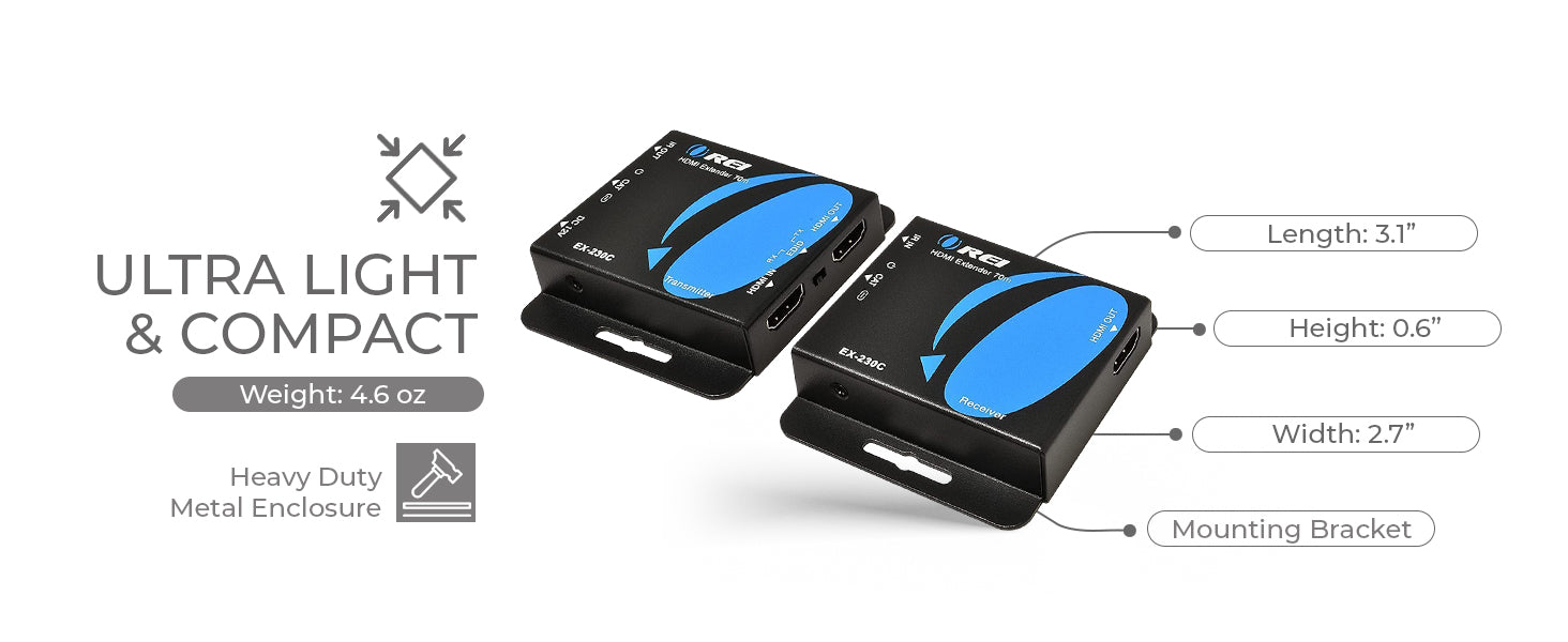 OREI 4K HDMI Extender with HDMI Loop Output, Uni- directional IR & Power over Cable (EX-230C)