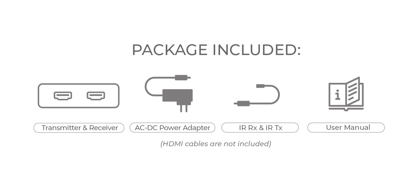 One-Way IR Signal Transmission – Allows remote control of the source device from the display location.