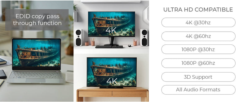 EDID Copy and Pass-Through – Allows seamless communication between source and display devices for optimal compatibility.