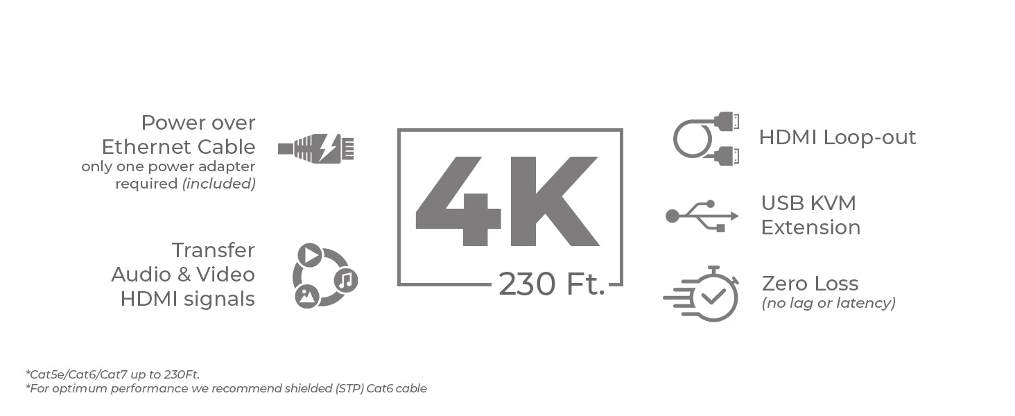4K@60hz HDMI™ Extender (KVM) - 230ft (cat6)-UHD-EX230-KVM