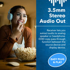 Analog Audio De-Embedding – Extracts audio via 3.5mm L/R OUT port on the receiver for flexible connectivity.