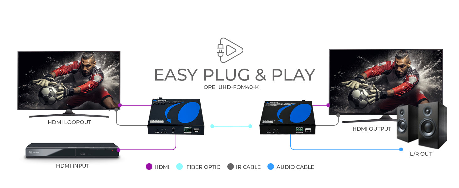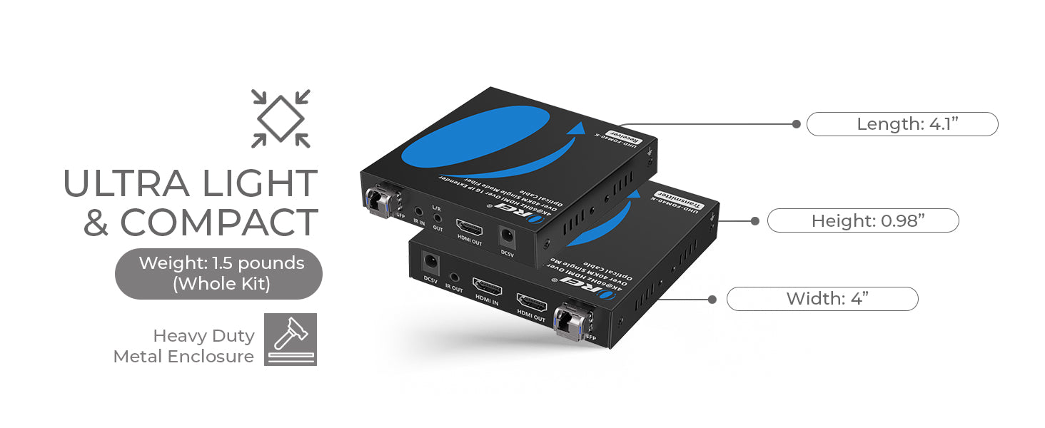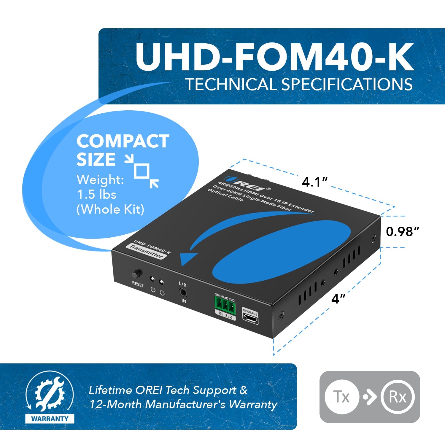 Built for long-term, 24/7 performance, the UHD-FOM40-K features a compact, industrial-grade design suitable for demanding use. Its Micro USB port allows for easy firmware upgrades, ensuring future compatibility and extended product life. Whether you're deploying HDMI over long distance, building a 4K HDMI over fiber solution, or implementing a high-end infrared remote extender setup, this device delivers stable, professional-grade performance you can count on.