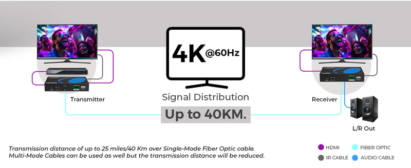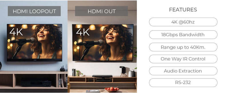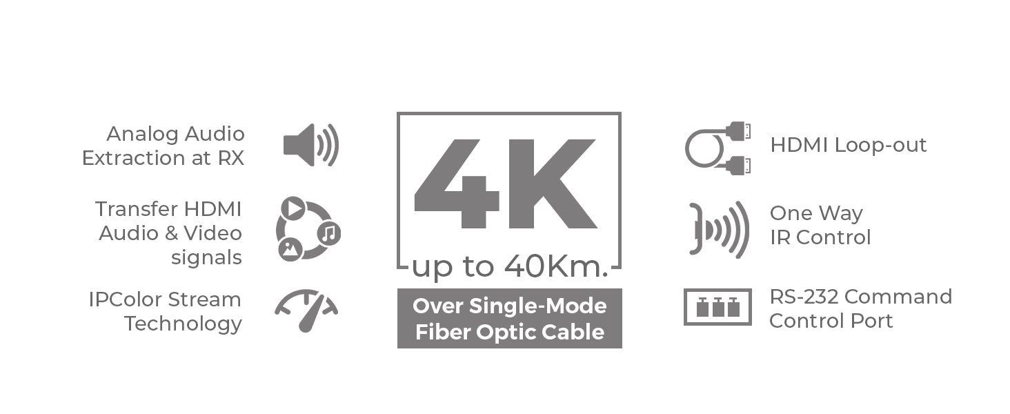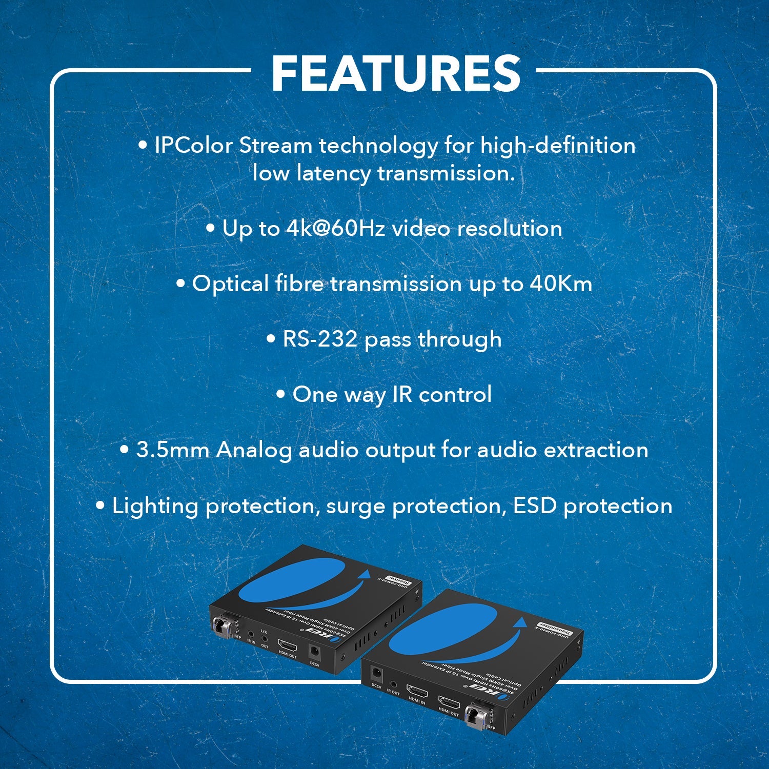 4K@60hz HDMI™ Extender (Over 1G IP, Loop, IR) - 40km (single fiber-optic)-UHD-FOM40-K