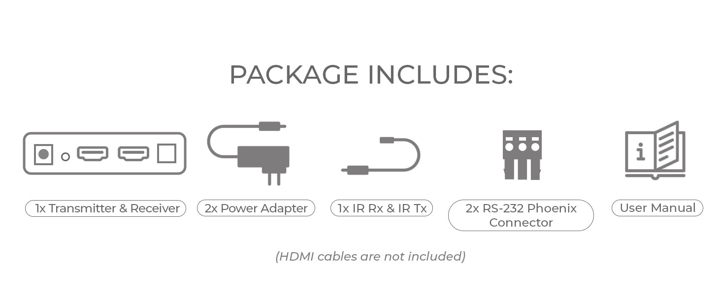 Fully compliant with HDMI 2.0 and HDCP 2.2 standards, the extender ensures a reliable and high-performance AV experience across demanding commercial environments.Ideal for one-to-one or one-to-many applications via a gigabit switch, this extender includes RS-232 pass-through and one-way IR for flexible device control.