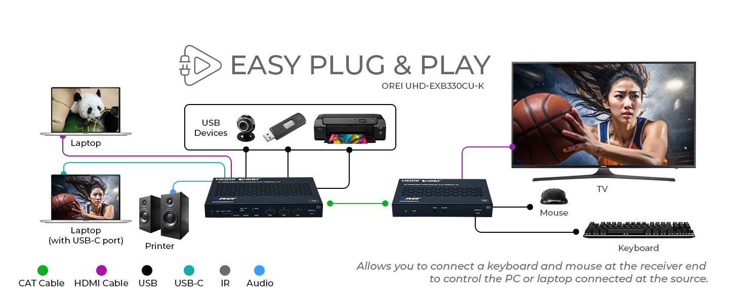 OREI UHD-EXB330CU-K: 4K HDMI/USB-C HDBaseT 3.0 Extender over CAT6/7 with KVM
