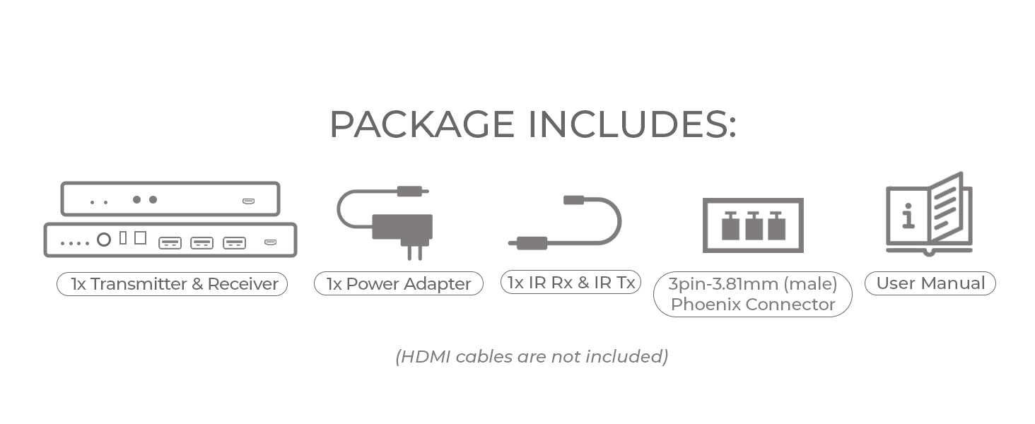 - Bi-Directional IR Control – Enables remote control of source or display devices from either end.