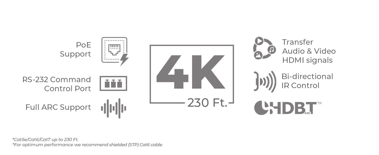 - Supports 4K@60Hz YUV 4:4:4 up to 230 feet