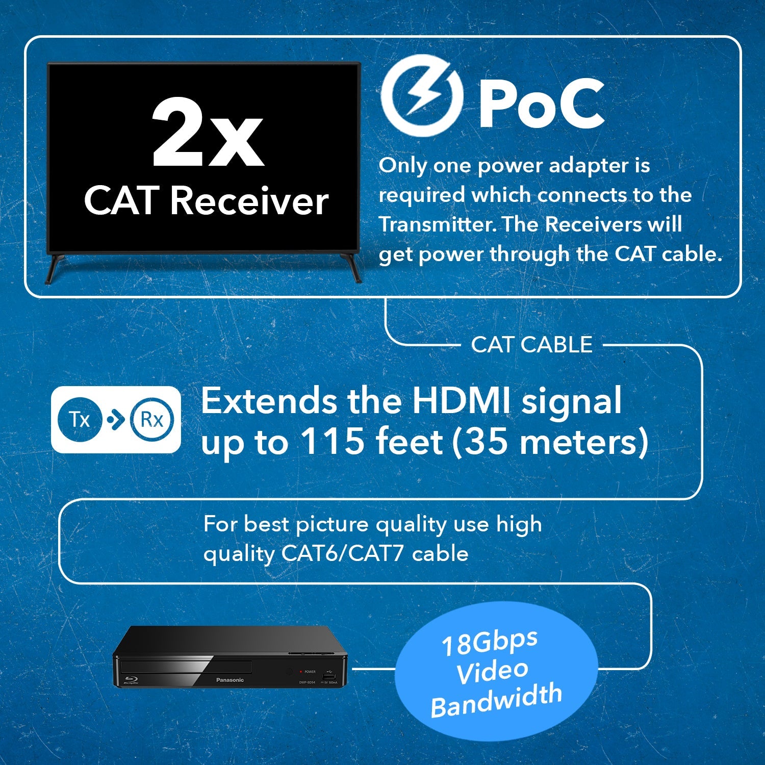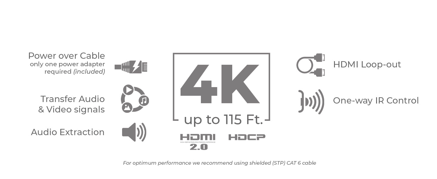 Long-Distance Signal Extension – Transmits HDMI over CAT6/6a/7 cable: