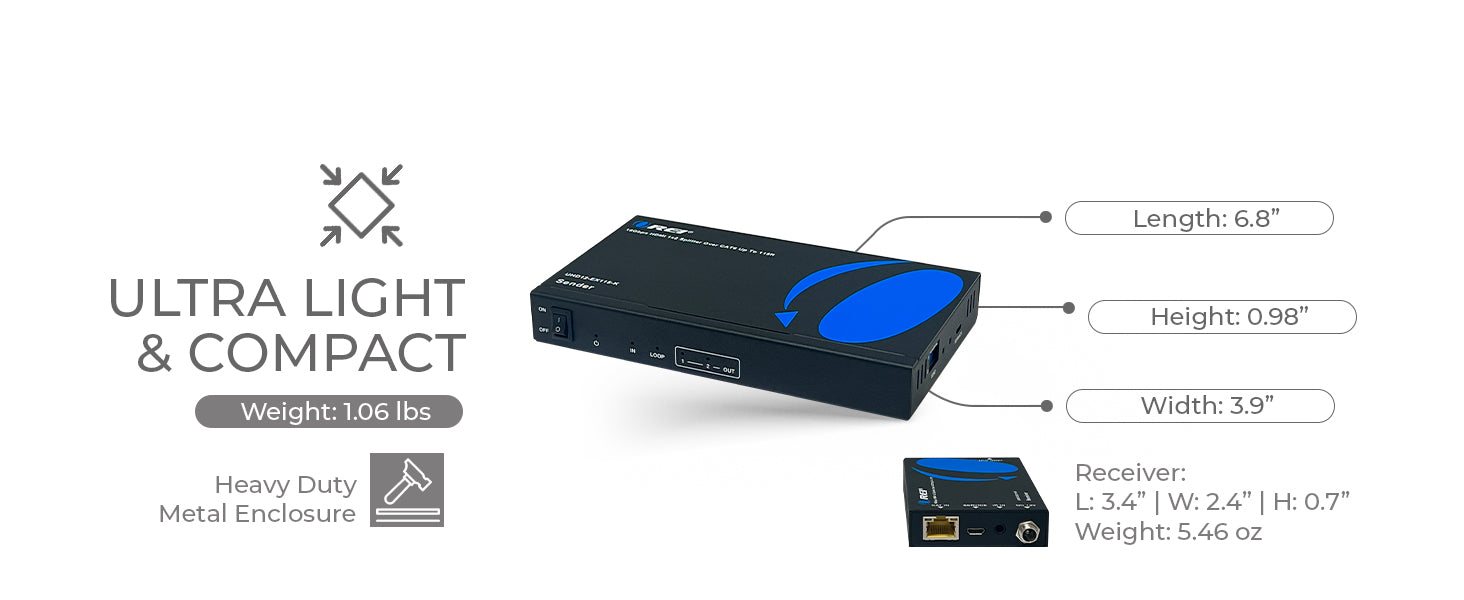 A convenient HDMI loop-out lets you connect a local display near the source for on-site monitoring or dual viewing. With one-way IR control, users can operate the HDMI source from the receiver side—making this HDMI screen extender ideal for remote-control classrooms, conference spaces, and retail displays.
