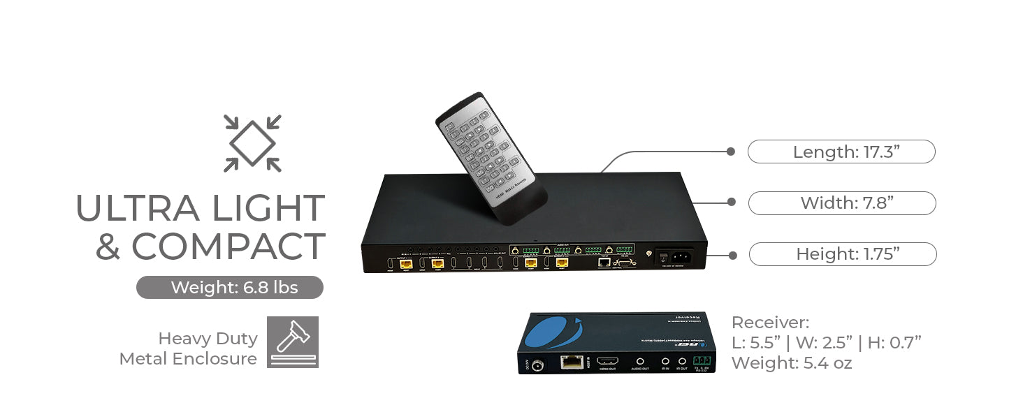 The device also supports Bi-Directional IR control, 24V PoC, CEC, and EDID management. Its 1U rack-mountable design with an OLED front panel and multiple control options—IR remote, front panel, RS-232, LAN, and Web GUI—make it an ideal solution for professional AV installations.