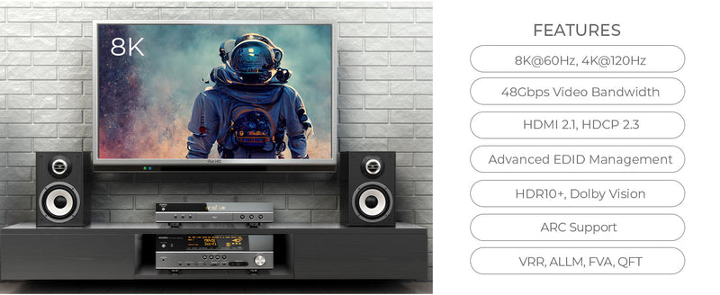 - HDMI 2.1 & HDCP 2.3 Compliant – Ensures full compatibility with next-generation displays, sources, and protected content.