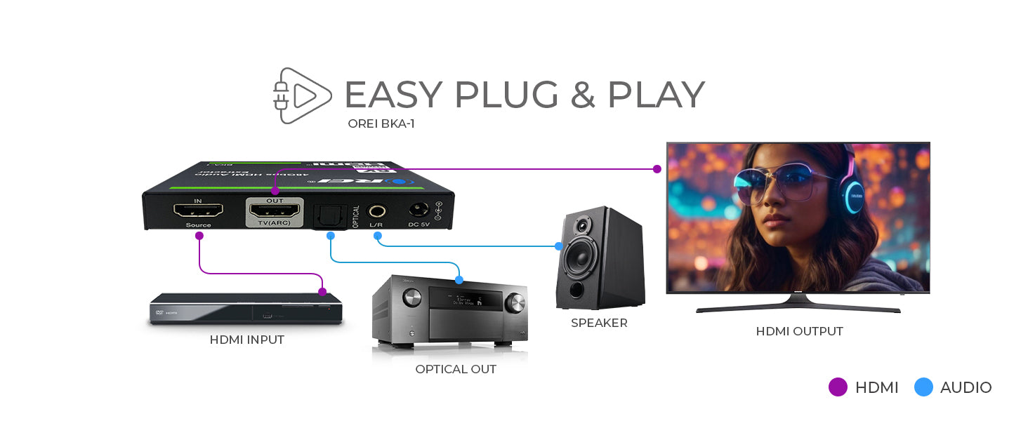 OREI BKA-1: 48Gbps 8K Audio Extractor with S/PDIF and L/R output, Dolby Vision