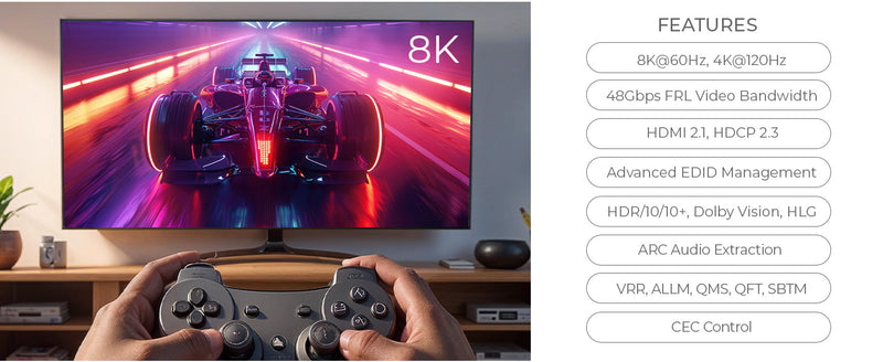 48Gbps FRL & 18Gbps TMDS Video Bandwidth – Ensures smooth, high-performance video signal delivery.