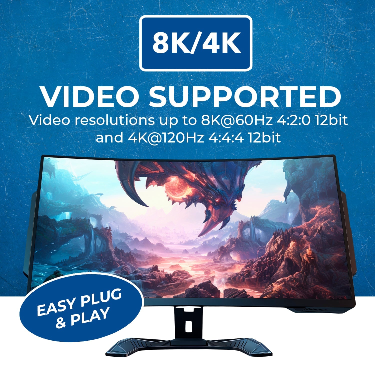 Supports up to 8K@60Hz and 4K@120Hz – Delivers ultra-high-definition video with advanced chroma subsampling.