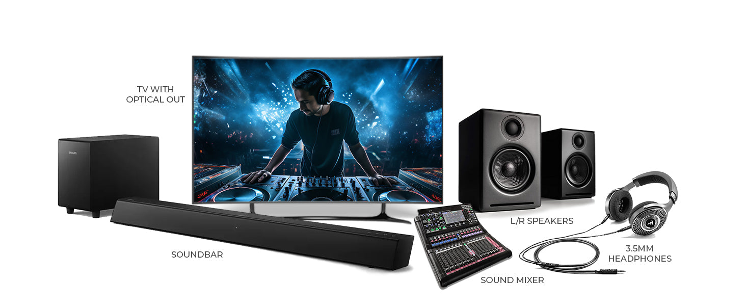 The DA21 Digital to Analog Audio Converter is the perfect solution for integrating digital audio sources with analog systems. It converts Coaxial or Toslink digital signals into analog stereo output, making it ideal for TVs, Blu-ray players, and streaming devices that lack analog ports. A must-have digital to analog audio converter for TV and home entertainment setups.