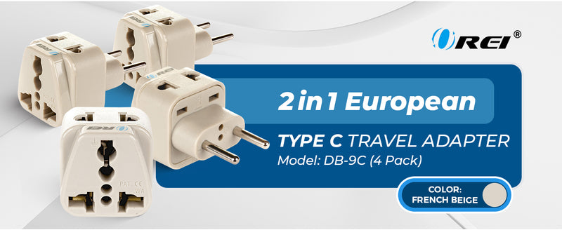 European Travel Adapter - 2 in 1 - Type C - Compact Design (DB-9C-4PK)