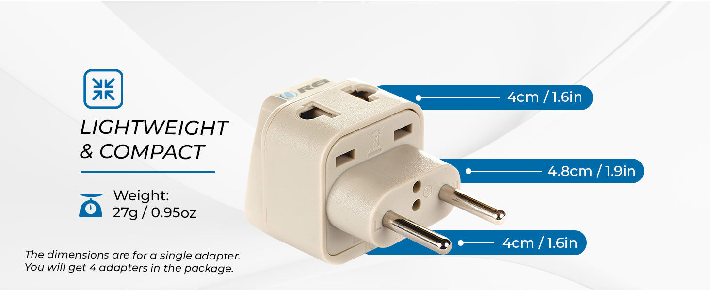 The DB-9C-4PK is designed in the US and it’s our top choice for travel adapter to use in Type C outlets. It's compatible for use with dual voltage or worldwide voltage devices .It features one socket to connect a N. American 2-prong or a 3-prong power cord to charge your devices.