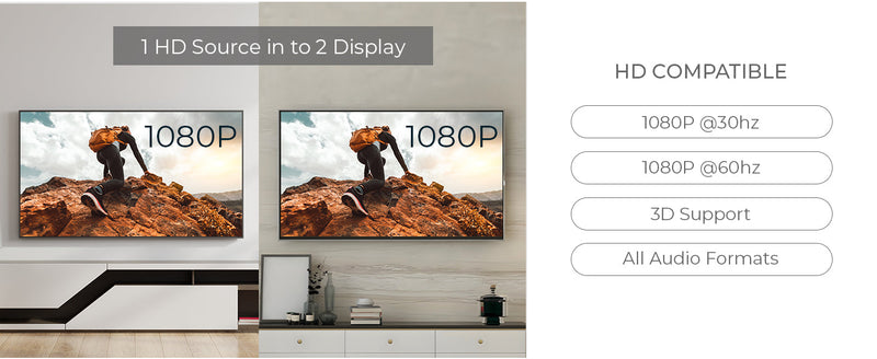 - HDMI 1.4 & HDCP 1.4 compliant. Supports 1080p media sources and ensures secure content transmission.