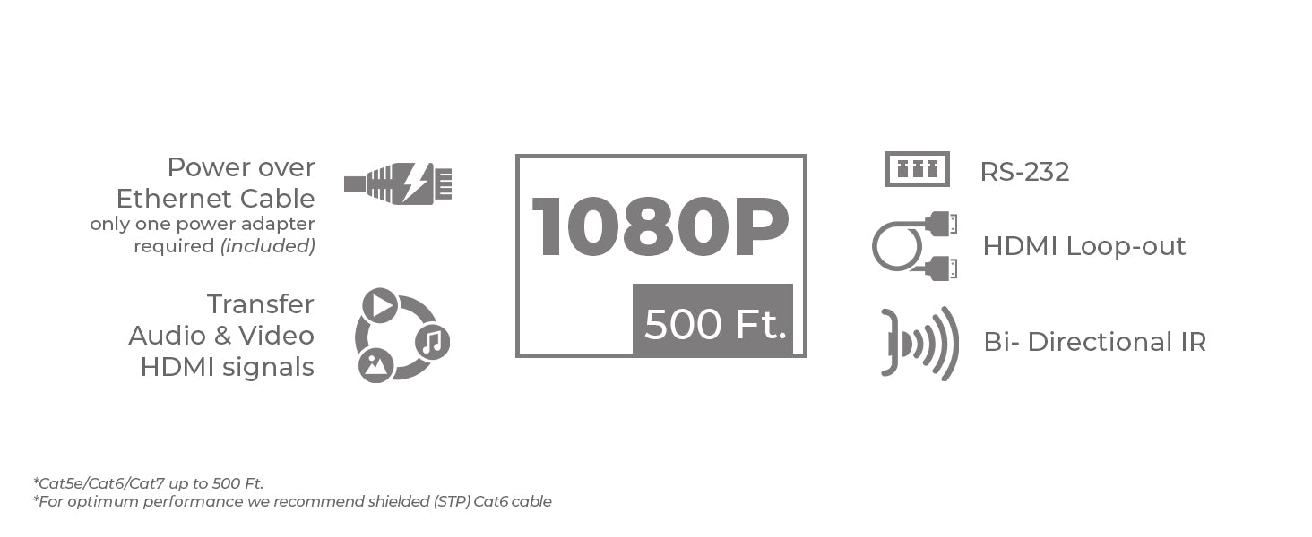 - Extended range up to 492 feet. Transmit video over long distances using a single CAT 6/7 cable.