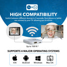 Plug and play without apps and wires. A useful click button control design can mirror, start or stop the screen sharing anytime. It also supports 1080p full HD with ultra-low delay for best wireless display experience