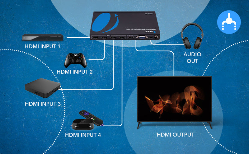 1080p 4-port HDMI™ Seamless Switch w/ Multi Viewer (Audio Extract)