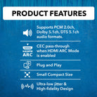 CEC pass-through is also supported when operating in HDMI ARC mode, allowing seamless control integration between connected devices. With ultra-low jitter and precision-engineered signal design, the ARC-EX300-K ensures uncompromised audio performance in both residential and professional AV installations.
