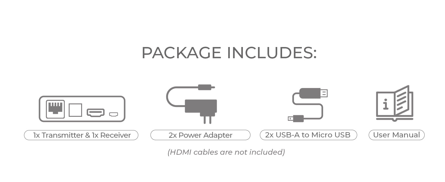 S/PDIF Audio Extension – Extends audio up to 492 ft (150 m) at 96kHz for systems without HDMI ARC.