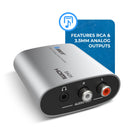 Dual analog outputs – Features both RCA and 3.5mm stereo outputs for flexible connectivity.
