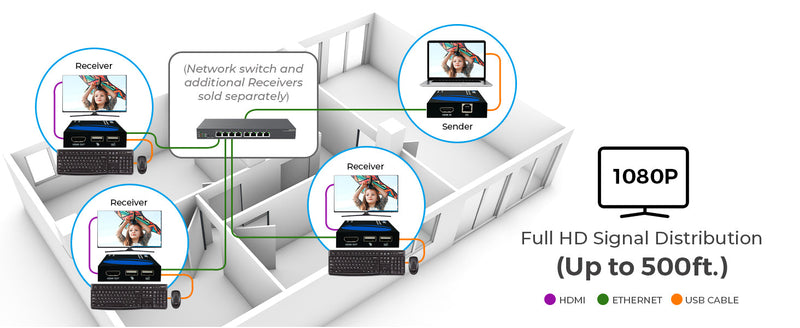 1080p HDMI™ Extender (Over IP, KVM) - 500ft (cat6)-EX-330-KVM